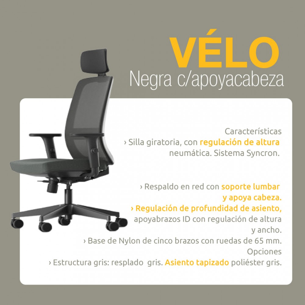Respaldo en red con soporte lumbar y apoya cabeza.