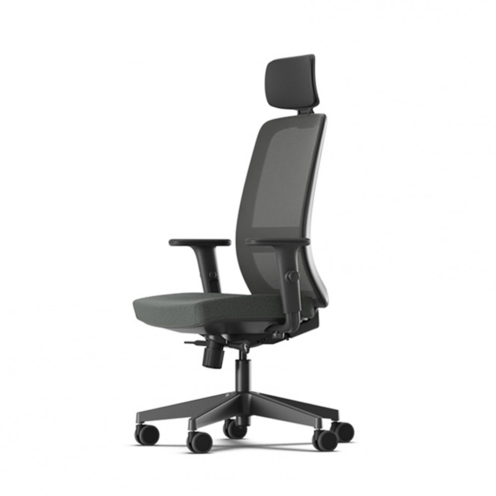Respaldo en red con soporte lumbar y apoya cabeza.