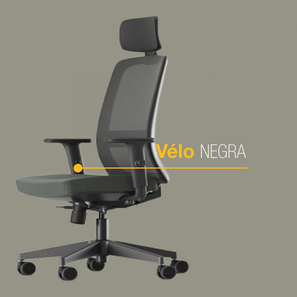 Estructura negra: Respaldo malla Negra y asiento tapizado poliéster negro.