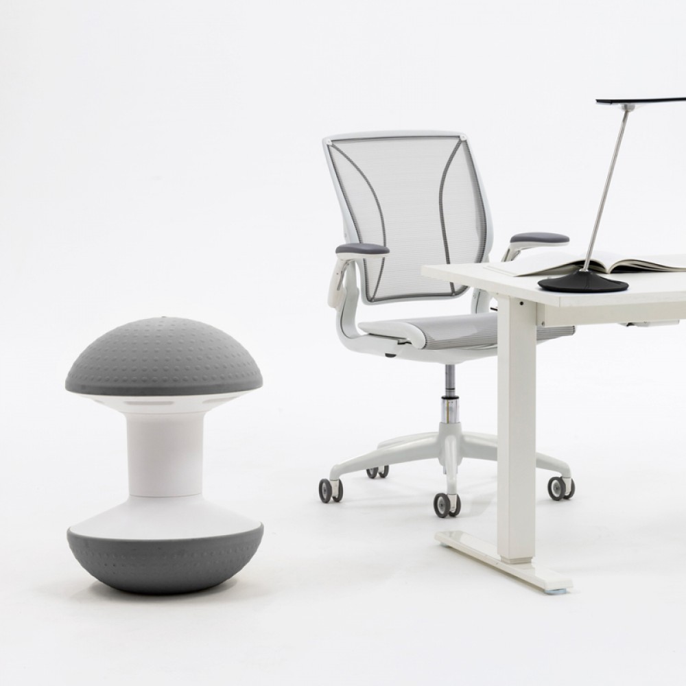 La base contrapeso asegura que este taburete se mantenga derecho y en su lugar.